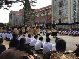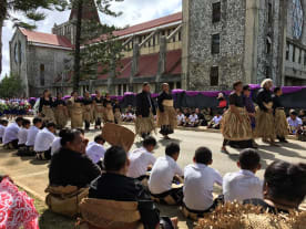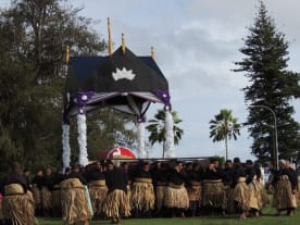 King Tupou VI and his sister Princess Pilolevu Tuita on his right. His wife Queen Nanasipau'u on his left. Credit: John Pulu / Tagata Pasifika