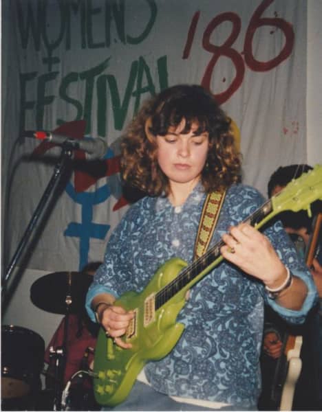 Jan Hellriegel performing at a women's festival in 1986.