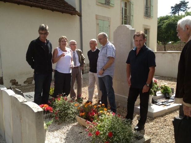 Ross and Lucille Newton visit the grave with Mayor Rety of Sassenay and officials.