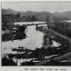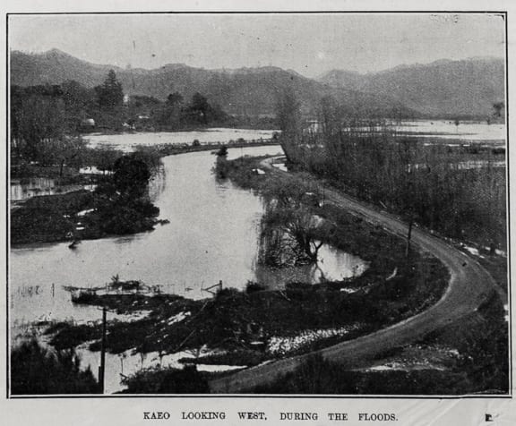 Kaeo looking west during floods in 1903. Sir George Grey Special Collections, Auckland Libraries, AWNS-19030924-10-5 ' when re-using this image.