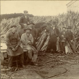 c 1905. Flax workers at an unidentified Foxton flaxmill.