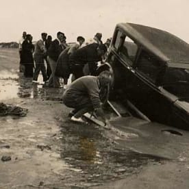 Car Stuck in Hole, Foxton Beach, 1935. Image: Foxton Historical Society