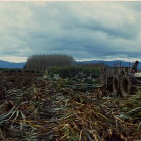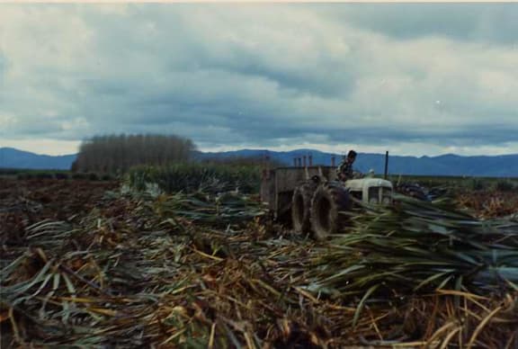 The last cutting of flax at the Moutoa swamp. 1974. Image: Foxton Historical Society