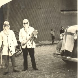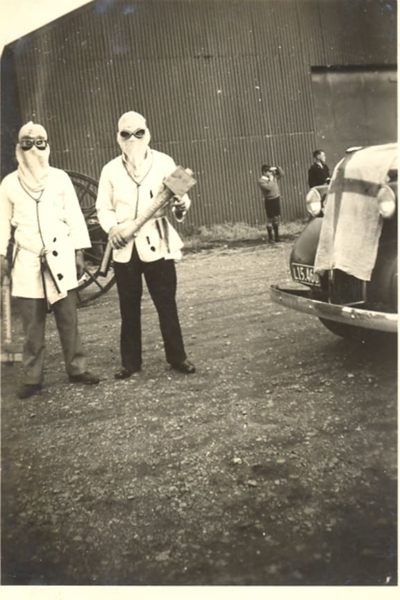 Dressing up as Ku Klux Klansmen for a Foxton parade, 1930. Image: Foxton Historical Society