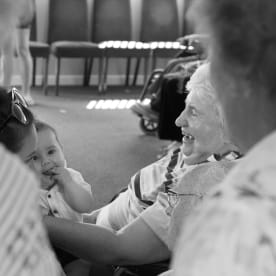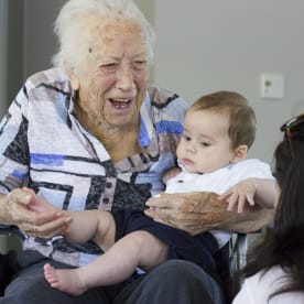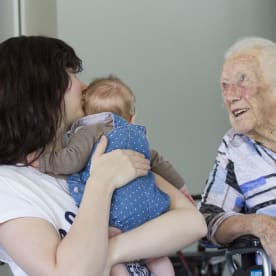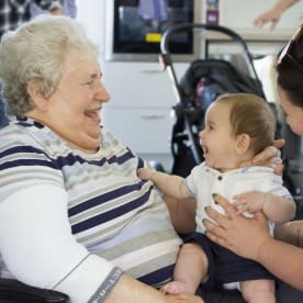 Parents take babies as young as 12 weeks and children up to five to the volunteer-run Wairarapa Intergenerational Playgroups at seven rest homes.