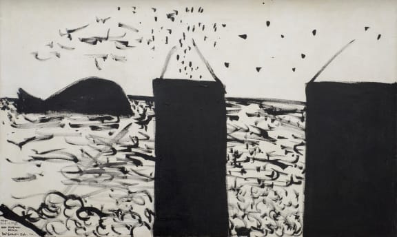 Colin McCahon, Moby Dick is sighted off Muriwai Beach, 1972, Auckland Art Gallery Toi o Tāmak. Courtesy of the Colin McCahon Research and Publication Trust