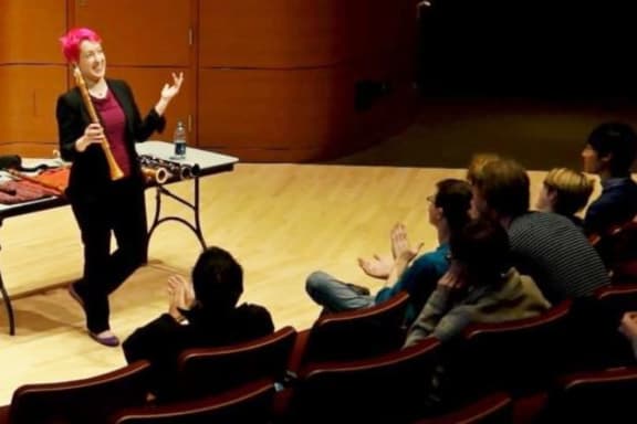Marie brought in three of her historical clarinets – one original and two copies – to the RNZ studio to show and play for Wallace Chapman. It’s a small portion of her collection of around 70 clarinets.