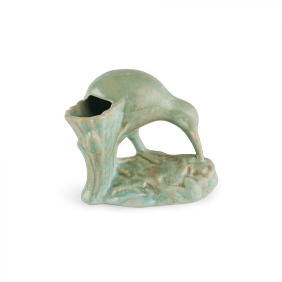 A Rare Crown Lynn Mottled Green Glazed Kiwi