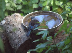 In this hot dry weather, bird baths are great for helping birds cool down and have a drink