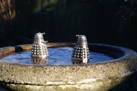 It was so c-c-c-cold in Masterton this winter that the water in our bird bath froze many times. One morning I put my heavy pewter Daleks on the solid surface for a skate - David