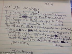 Letter sent to Lego by 7 year old Charlotte Benjamin in 2014