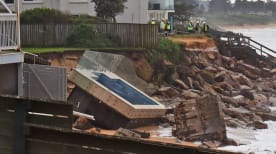 An inground pool sits amongst the rocks after a severe storm at Collaroy on Sydney's northern beaches.Photo AFP