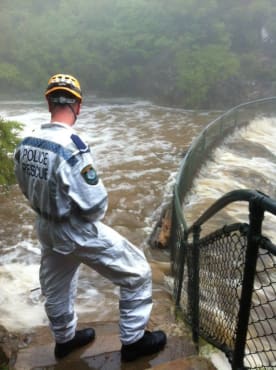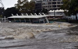 A ferry terminal submerged by the overflowing Parramatta river. Photo AFP