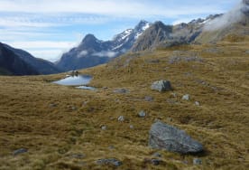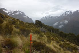 Sugarloaf Pass looking south east to Lake Wakatipu. The route ends in the valley as does the western end of the Routeburn track. (photo by Tim Dunning)