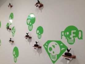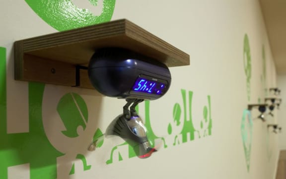 Australian musician, performance and video artist Kusum Normoyle and robotic alarm clock birds Future Calls the Dawn Contagion by Eugene Hansen Jenny Gilliam and Dr Kron at Sound Full at City Gallery Wellington.