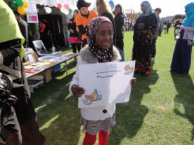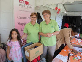 Dr Mary Dawson (on right) with a member of the Somalian Community.