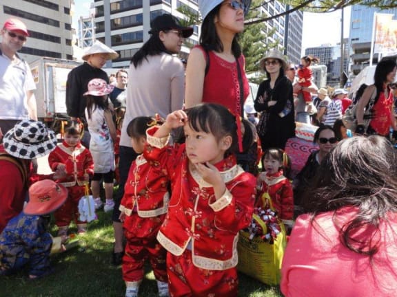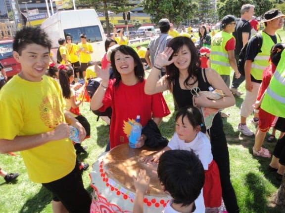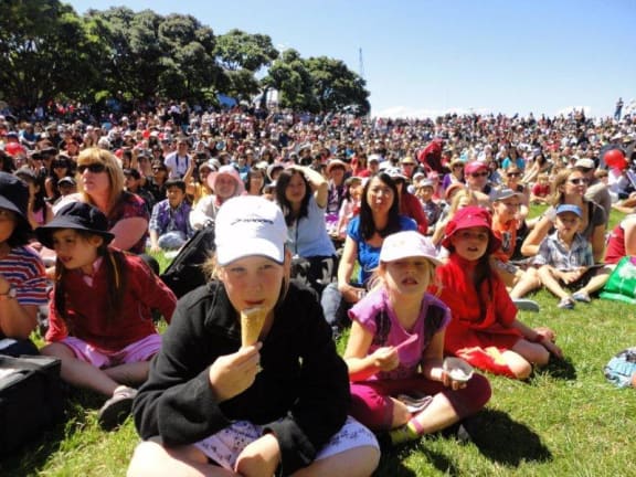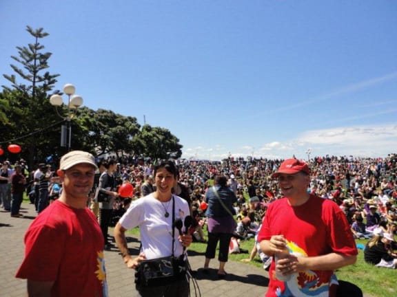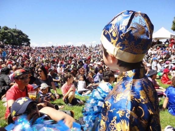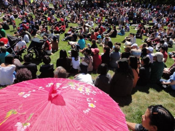 Pink Umbrella! the audience at Frank Kitts Park, Chinese New Year.