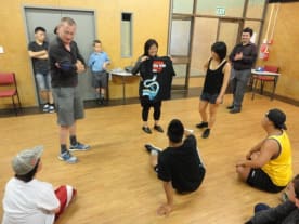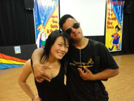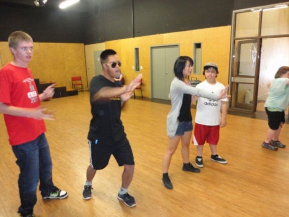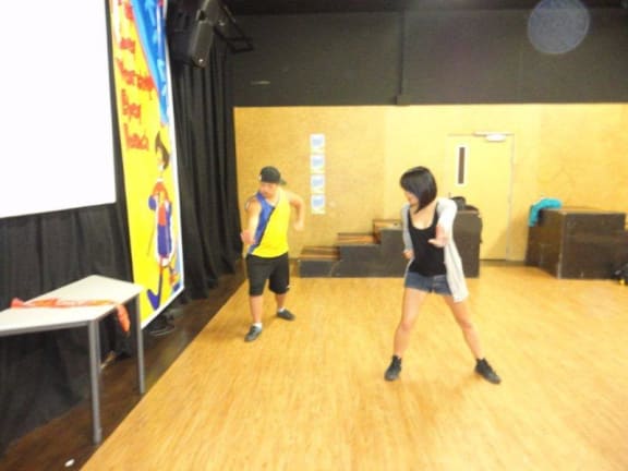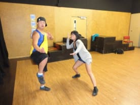 Keegan Joe tries out moves with hip hop tutor Nicky Lim.