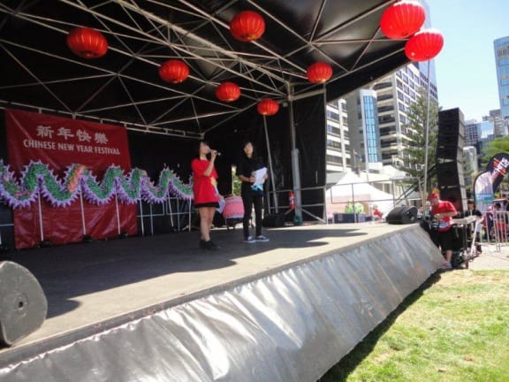 Nicky Lim and Stephanie Lee Co-MC Frank Kitts park, Chinese New Year.