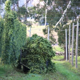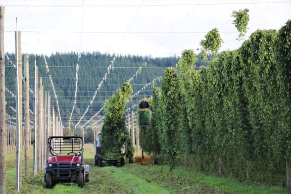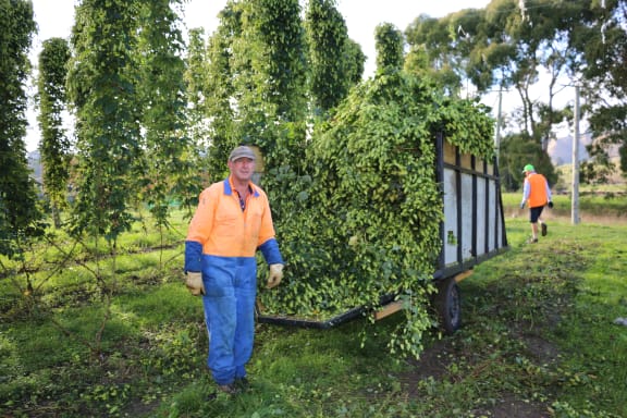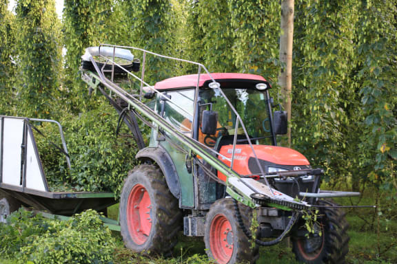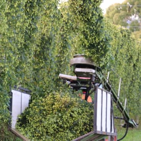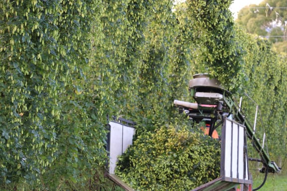 Watch Cameron's father Bruce harvesting hops with a tractor.