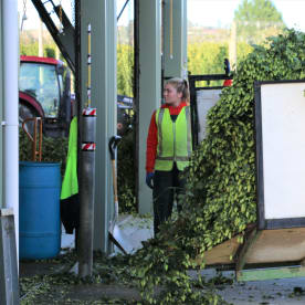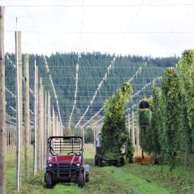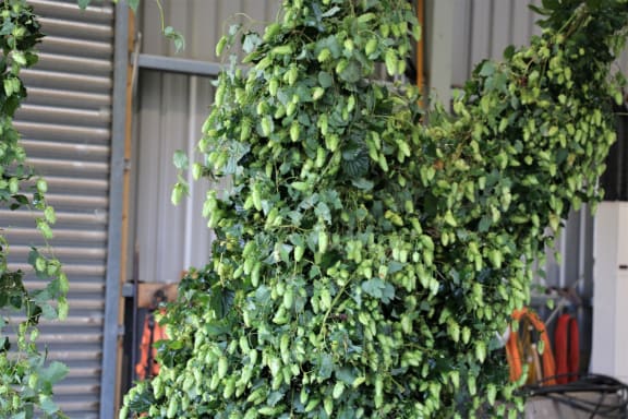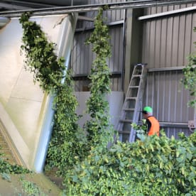 Watch the hop bines being processed for drying.