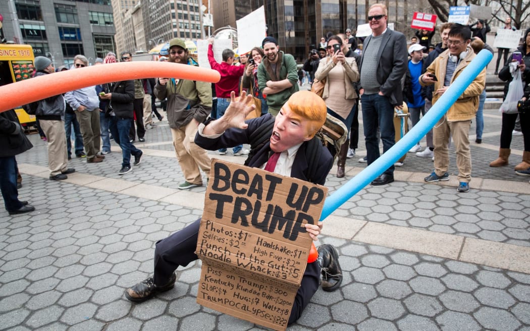 In New York Enormousface first came to prominence during the Occupy Wall Street Movement and also received a lot of attention on the streets in 2016 for his ‘Beat up Trump’ performances. Kalan also gained notoriety for being arrested while protesting elitism in the arts at the gates of Art Basel Miami.