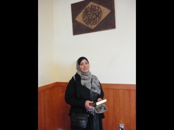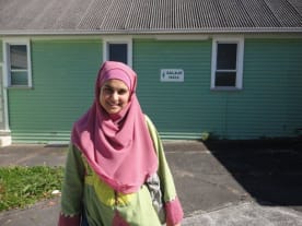 Leila Adam holding the Qur'an Wellington Masjid Kilbirnie Mosque.