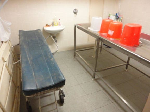Soap, handbasin, Room for preparing bodies, Pakuranga.