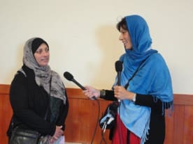 Lynda interviewing Leila, Kilbirnie Mosque.