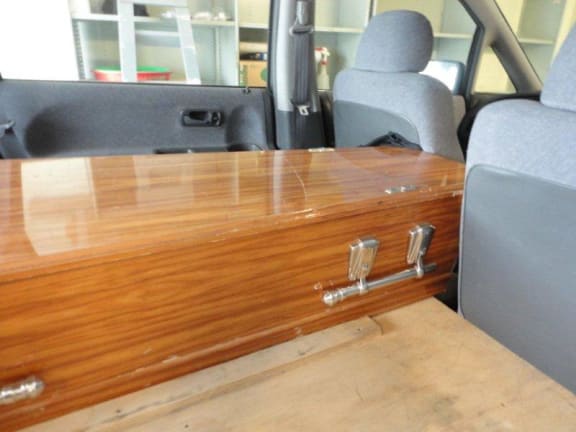 The gurney to carry the deceased, Shi'ite community, Pakuranga, Auckland.