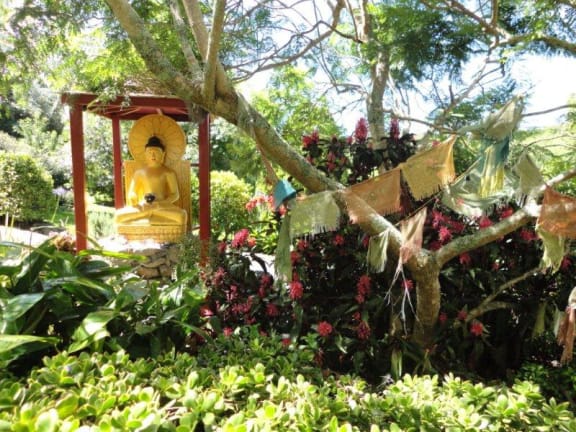 Buddha in garden, Dorje Chang Institute, Auckland.
