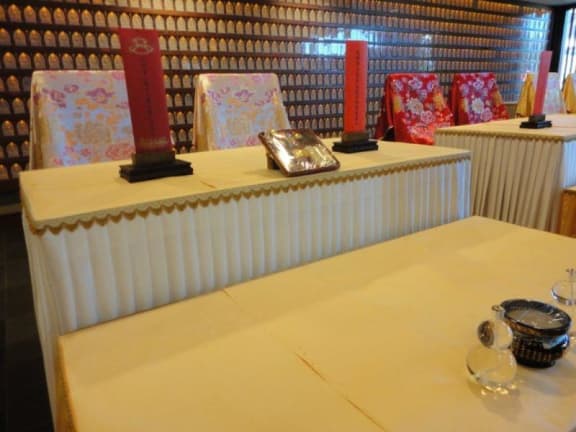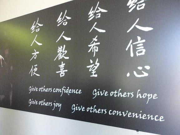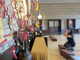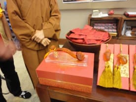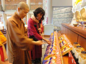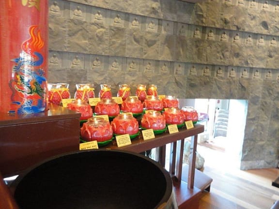 Prayers at the entrance, Fo Guang Shan, Auckland.