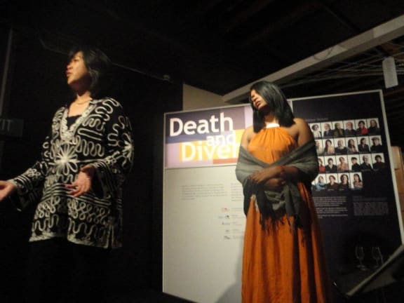 Belinda Bonzon-Liu and Syerina Syahrin, Voice Arts Performance at exhibition opening.