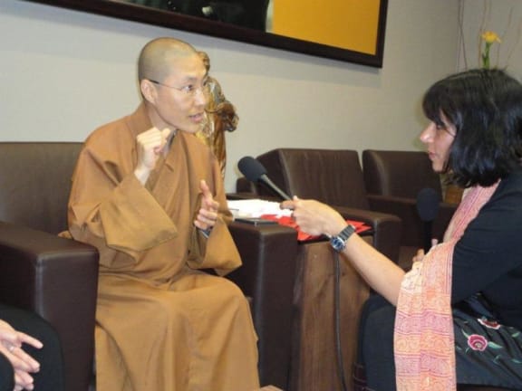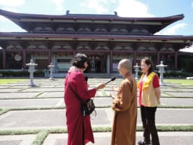 Lynda Chanwai-Earle interviewing the Venerable Manwang.