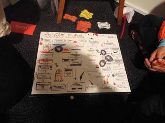 Jaqui Knowles with participant, Death & Diversity Exhibition opening.