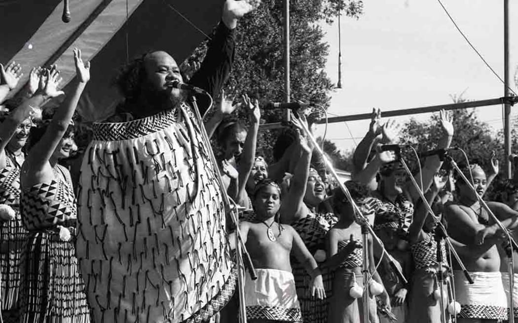 Dalvanius Prime with the Patea Maori Club Grey Lynn Festival 1986 (Photo: Gil Hanly). Photo: