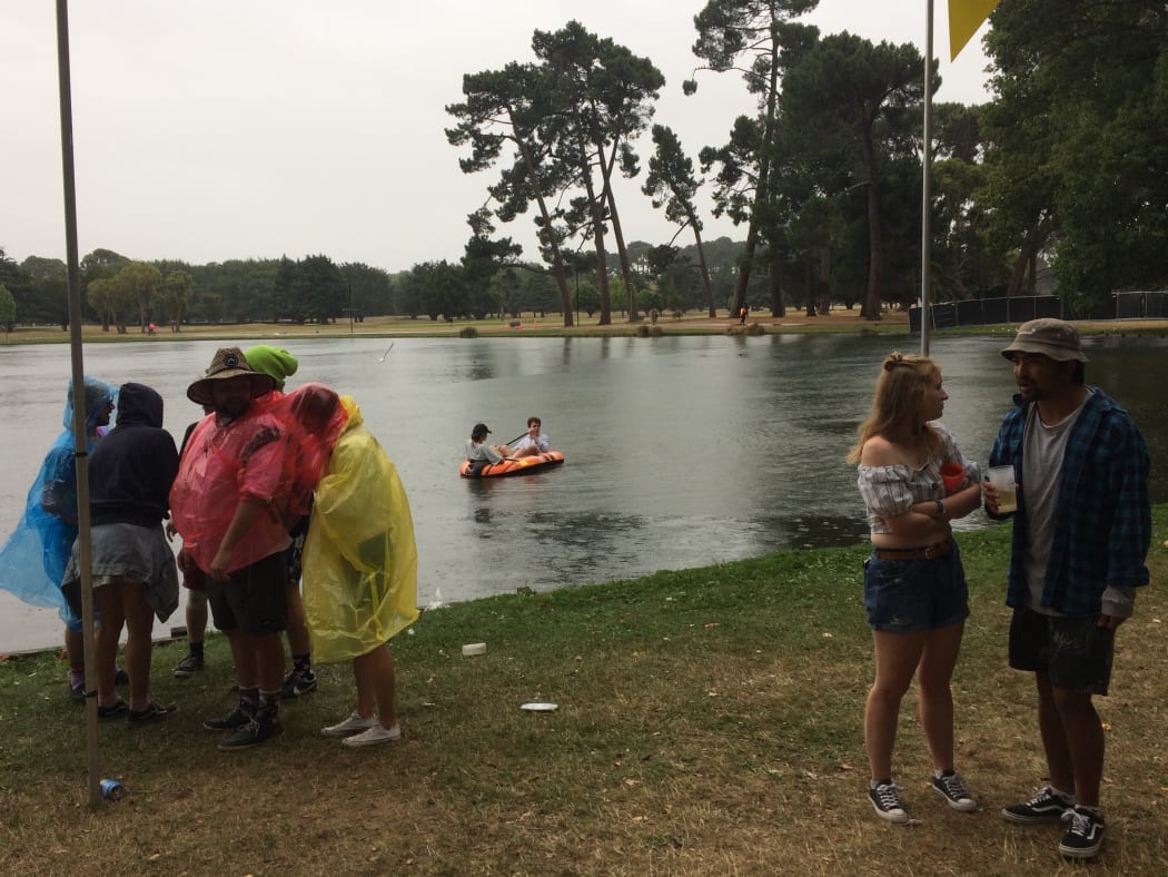 In the middle of all this, two young men attempted to enter the festival by paddling across Lake Victoria in an inflatable dingy. They soon realised there were half a dozen cops and security staff waiting ashore. This led to a protracted stand-off, with the boat hovering about 10 metres offshore, and the two men getting progressively wetter and drunker, with no resolution in sight.