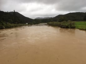 Heavy rain in the Clevedon area, south of Auckland, has swamped streams and rivers. Photo: RNZ / Sarah Robson