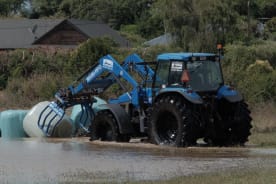 Shaun Brantsma helps rescue stock in south-east Auckland. Photo: RNZ / Sarah Robson