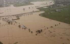 Flooding at the Kauaeranga River mouth in Thames. Photo: Waikato Rescue Helicopter