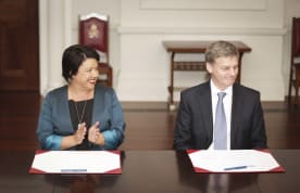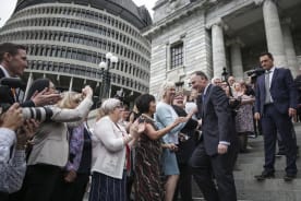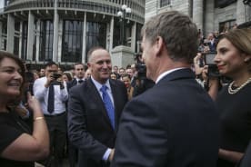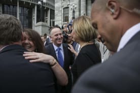 Prime Minister Bill English shakes Deputy Prime Minister Paula Bennett's hand. Photo: Rebekah Parsons-King