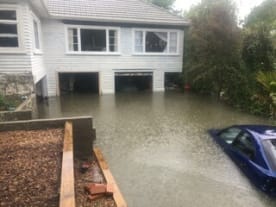 Floodwaters affect a house in Lower Hutt suburb Waiwhetu. Photo: Supplied / Peter Fraser