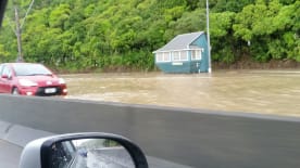 Flooding at Koromiko just outside Picton. This is the highway from Picton to Blenheim. Photo: RNZ / Tracy Neal
