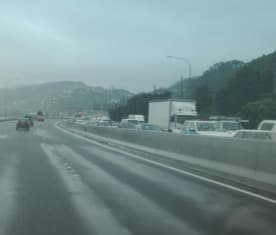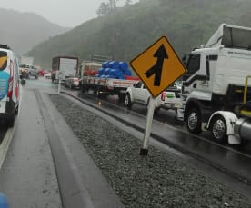 Traffic heading north of Wellington. State Highway 1 ahead is closed. Photo: RNZ / Ceinwen Curtis