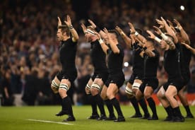 Richie McCaw (L) leads the haka prior to New Zealand's clash with Georgia.
