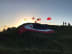 The tino rangatiratanga flag is seen at Ihumātao as the day draws to an end for protesters on the land on Friday, 26 July. (PHOTO: RNZ)