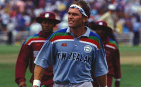 Leading the Black Caps to the 1992 semi-final against Pakistan. Credit / Photosport