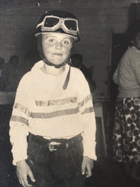 A young Mike Moore at a fancy dress party as a racing car driver in the 1950s.