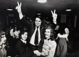 Mike Moore on election night 1972, winning the Mt Eden electorate.