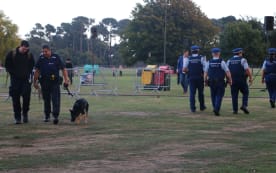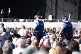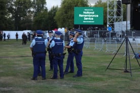 A huge police presence at the national remembrance service in Christchurch. RNZ / Simon Rogers